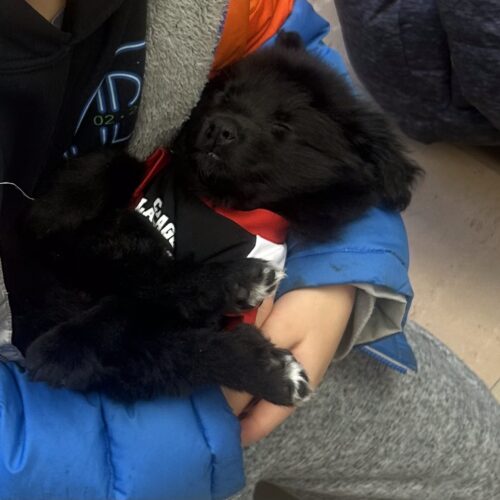 Once surviving the freezing cold with very little protection, this sweet Newfie/Lab mix girl is finally getting her chance at a warm bed, full belly, and a family who will never let her down again. Despite her rough start, she is incredibly gentle, affectionate, and eager to trust the humans around her.
